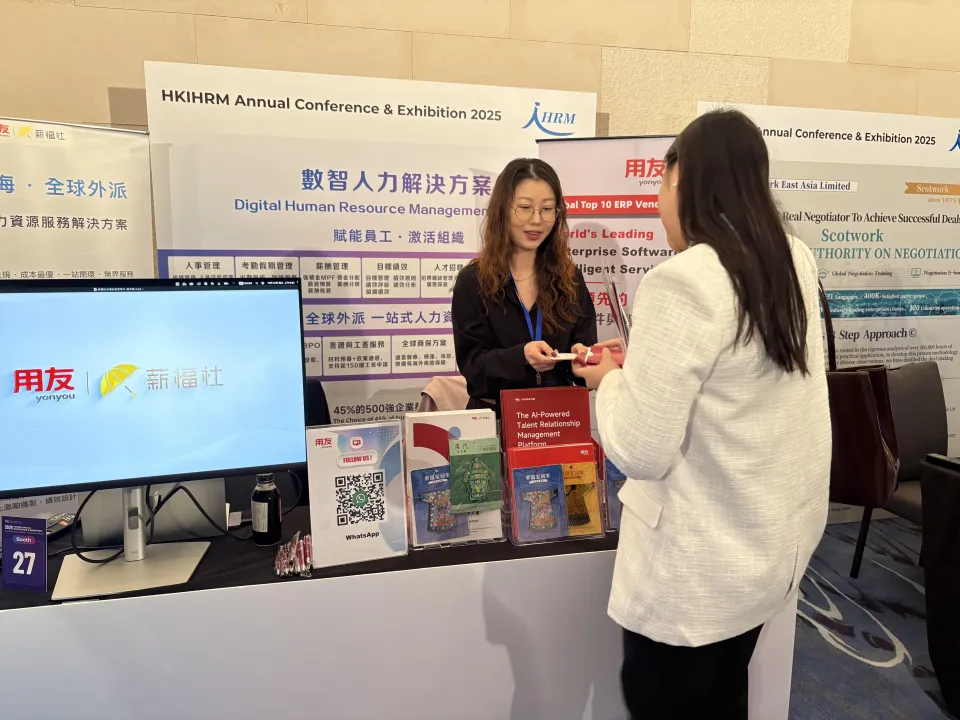 The Hong Kong Institute of Human Resource Management (HKIHRM) Annual Conference concluded successfully on December 12, 2025, at the Ocean Park Marriott Hotel. Under the theme “Future Proofing the Workforce – Thriving in Uncertainty,” the event brought together HR leaders from numerous leading Hong Kong companies and industry experts. Yonyou Software (Hong Kong) Co., Ltd. participated in the exhibition, presenting its intelligent Human Capital solutions powered by the new-generation YonBIP business innovation platform. The presentation provided deep insights into how AI technology and global product capabilities empower enterprises to advance their digital-intelligent transformation amid intense competition and in global markets.